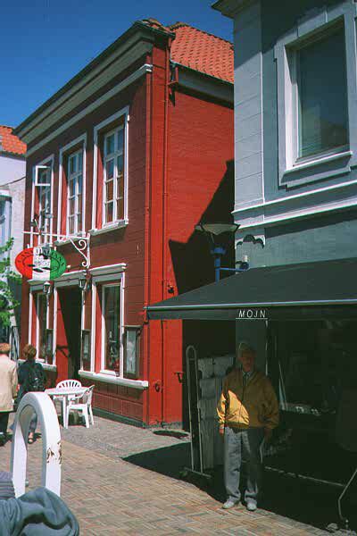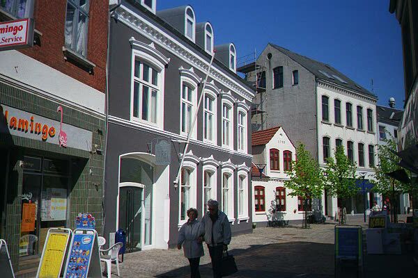 Usual procedure for numbering along streets in Denmark is radially from a central point(typically the market). In the case of Aabenraa another focus has been chosen: the northeastern limits of the old town. This is why the succcessive streets Storegade-Ramsherred-Nørreport are numbered the "wrong way round".