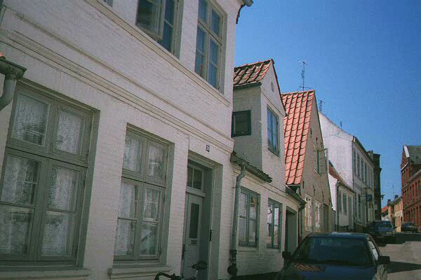 On the corner we find "Redergården"(The Shipping Yard). It's named after ship owner Jørgen Bruhn(died 1858), but the house is older, as it's constructed for Niels Thomsen in 1785-87. During WWII it was turned into headquarters for "Ortskommandantur Rennbahn", the local headquarters of the German Wehrmacht, after its original seat, Clausen's Inn on the other side of the market, was burnt December 14th 1942 by accident.