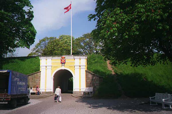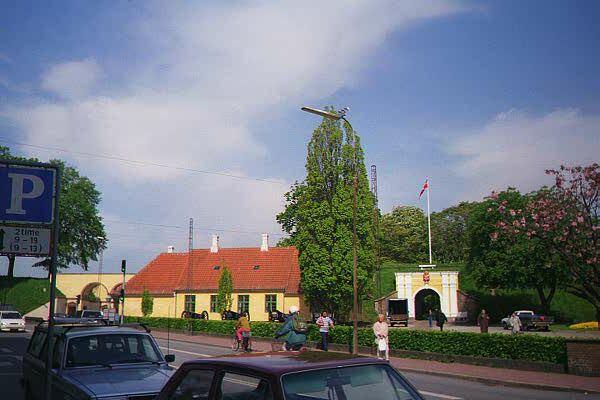 Danmarksgade slutter ved Landsoldaten og gaden af samme navn fyldes ad I. P. Schmidt juniors købmandsgård og cigarfabrik fra 1772 - nu ældreboliger.