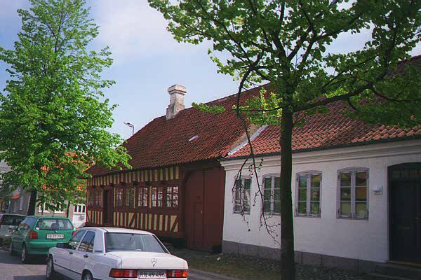 Vi runder kirkegården og går vest på ad Danmarksgade. Denne gade hed oprindeligt Skånegade, men som følge af Carl Gustavkrigene ændredes navnet til Algade. Siden kaldes den også Klerkegade.