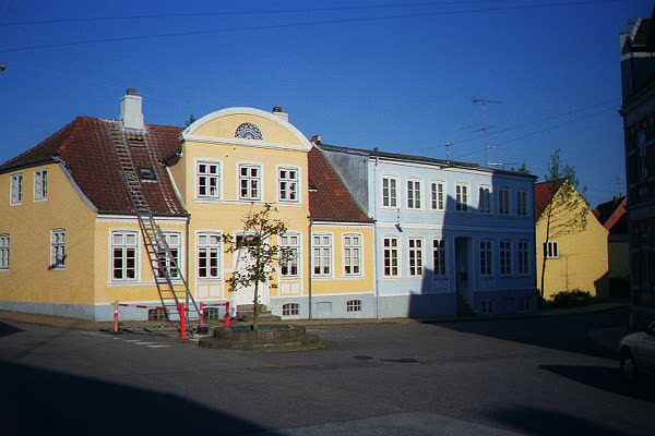 Overfor ligger gæstgiveriet Harmonien. Navnet skyldes, at den selskabelige forening "Harmoniske Selskab" fra 1799 siden 1811 havde holdt til i bygningen, som da rummede Trauls Erichsens Gæstgiveri. I 1853 købte foreningen, som i mellemtiden havde ændret navn til "Selskabet Harmonien", bygningen. Selskabet blev et vigtigt samlingspunkt for de dansksindede, idet politiske foreninger blev forbudt.