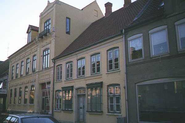 Lige overfor går en smøge ned til Gl. Haderslev(St. Severin) Kirke, men vi skal videre ad Storegade.