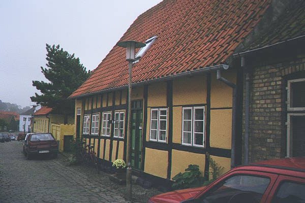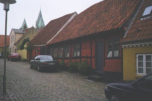 Ved det første kryds mødes kontrasterne: mod venstre og lige frem breder sig de lave, fortrinsvist gule og røde småhuse i skipperkvarteret langs Strandstræde(der tidligere også bar de mere farverige navne Grønnegade og Svinepinen) og Bag Slotsgraven, mens Slotsgade til højre med dens brede facader leder op over den for længst tilkastede voldgrav. Og på hjørnet ligger Kyholm: