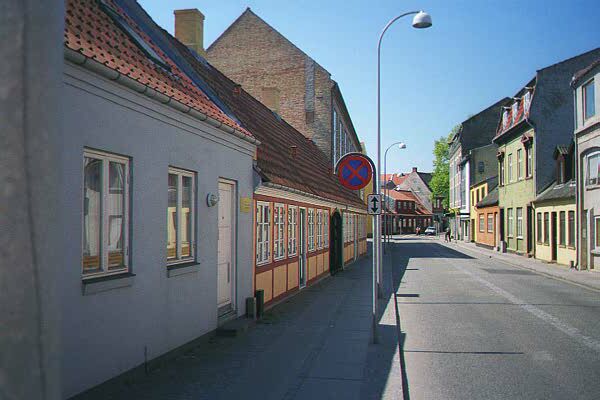 På hjørnet af Hestemøllestræde finder vi gadens måske mest interessante hus, selvom selve bygningen ikke bærer præg deraf. Fra 1761 lå Rakkerens Hus her. Siden glider det over på Lars Valbys hænder og kaldes derfor Valbyhus. Hos ham boede den heristratisk berømte Caspar Røghat("Der var engang"). Nu bærer bygningen navnet "Bødlens Hus". Tilsvarende har også strædet båret flere navne: Morten Smeds Stræde, Lille Kalstedgade, Skællebækstræde, Fuglesangsstræde og Rakkerstrædet. Hestemøllen lå i Slotsgade overfor strædets udmunding. Fuglsang var navnet på en frugthave i Fruegade. Ikke bare den omskiftelige historie huset har været udsat for, gør det interessant. Det blev købt af kommunen 1974 og kondemneret, men så greb arkitekt Tage Corfitzen ind, og fik Fællesorganisationen til at afkøbe kommunen huset. En gennemgribende restaurering af det forfaldne hus udviklede sig til et nyt syn på saneringsplaner og Fruegades sanering har dannet forbillede for lignende byfornyelser i andre byer. En eller anden burde opsætte en mindeplade for ham.
