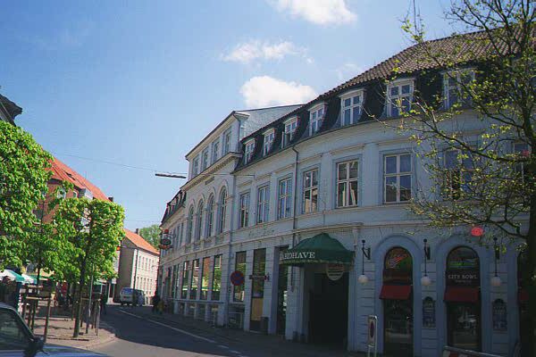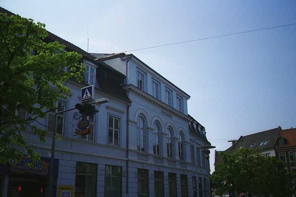Fruegade er navngivet efter en for længst forsvundet Vor Frue Kirke, som lå næsten der, hvor idag denne bygning(opført 1856) stoltserer: Østre (Borger-)skole. Indtil 1833 var der fattigkirkegård her. Skolen belv uforskyldt anledning til en del bryderier under 2. Verdenskrig for kommunen modsatte sig længe tyskernes overtagelse af bygningen til indkvartering, hvilket blev en realitet i 1943.